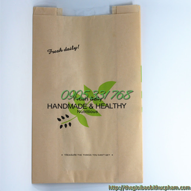 Ngoài ra, bạn nên sử dụng túi giấy đựng bánh mì thay túi ni lông vì: chúng rất lịch sự, sang trọng, an toàn cho người sử dụng; và trong thực tế, các nhà khoa học khuyên chúng ta nên hạn chế tối đa tiếp xúc với túi ni lông vì chúng có hại cho sức khỏe và làm giảm sự hấp dẫn của sản phẩm.