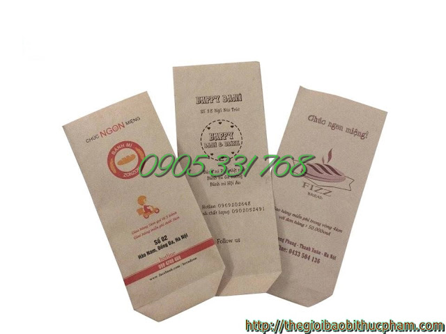 Túi bánh mì bao gồm các loại như: túi giấy có quai, túi giấy đáy vuông, túi giấy đáy dẹt,…